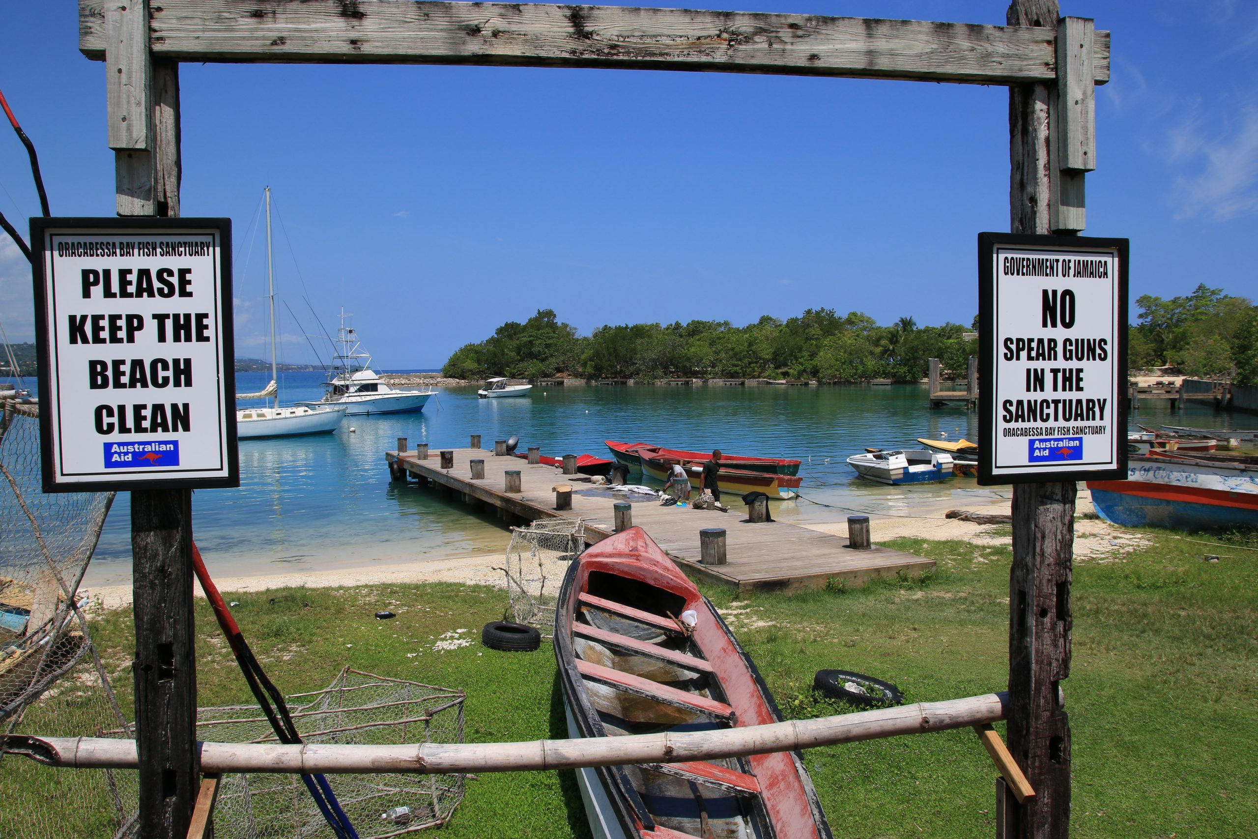 Die Landschaft ist grün und hügelig, wir erreichen das üppig bewachsene Portland. Hier im East Portland Fish Sanctuary wird die Regeneration von Mangroven und Riffen gefördert. Die Bucht ist wunderschön, sogar Delfine lassen sich hier gelegentlich blicken, erfahren wir. Ein weiterer Schachzug, um die Naturschönheiten zu fördern und zu schützen: „Wir wollen hier das Tauchen populär machen“, erklärt uns Lee-Ann Widener von der Tauchbasis Lady G‘Diver in der Marina Errol Flynn. Denn mit den Tauchtouristen kommt nicht nur Geld ins Land, sondern auch ein Bewusstsein für die Umwelt. Das Projekt genießt prominente Unterstützung: Francesca von Habsburg, Taucherin seit früher Jugend, engagiert sich für das Meer.